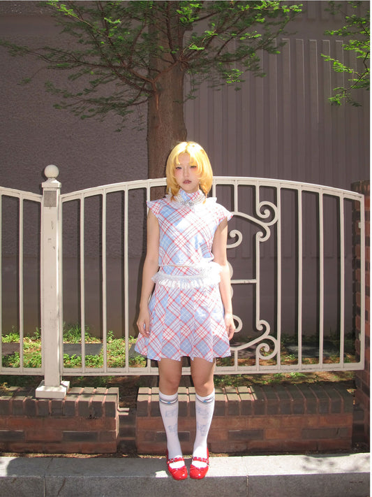 LovePlay – Y2K Red Plaid Skirt Summer Hero Set