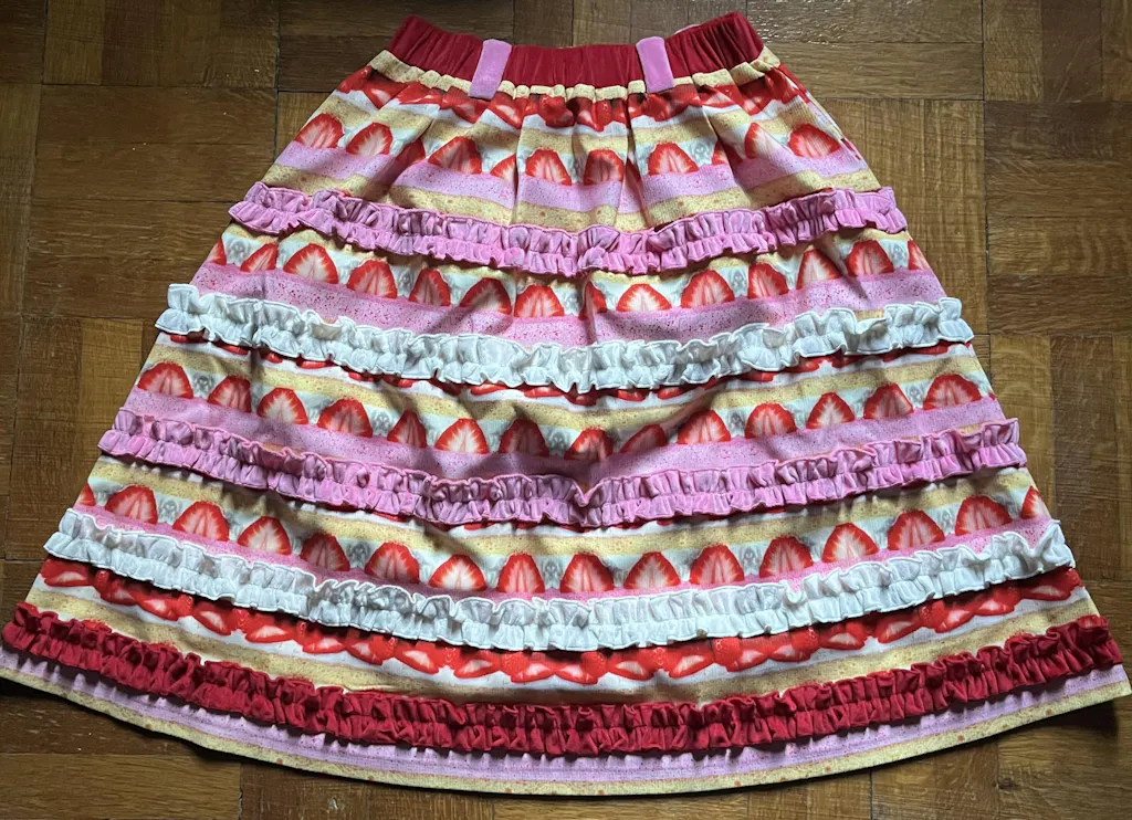 Sweeten your autumn and winter wardrobe with frufru’s Kawaii Strawberry Cake Skirt, blending cute charm with vintage vibes.